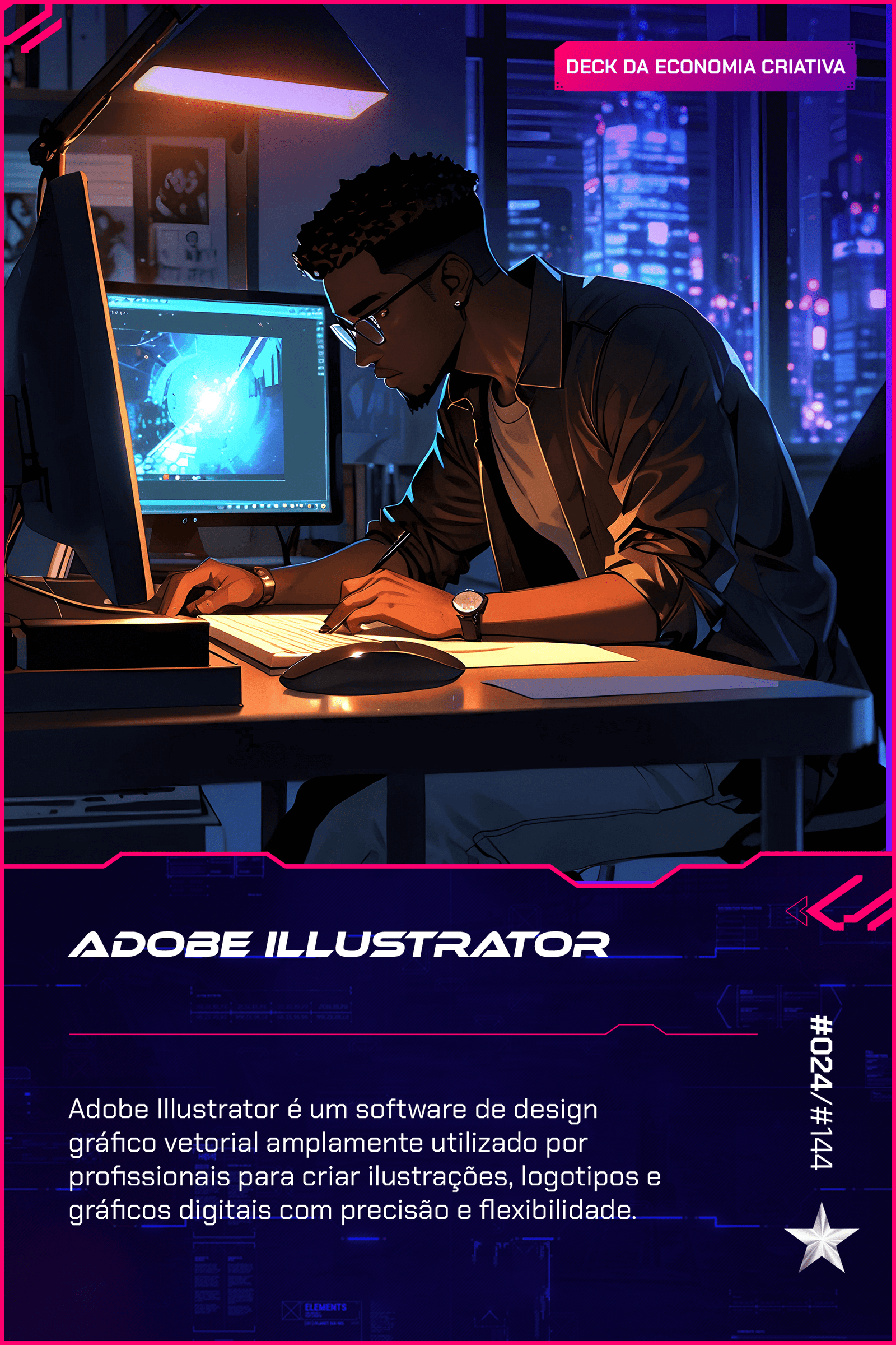Lançado pela Adobe Systems em 1987, Adobe Illustrator é um software de design gráfico vetorial utilizado por designers para criar ilustrações, logotipos e gráficos com alta precisão. Ele é uma ferramenta essencial no arsenal de qualquer designer gráfico, permitindo a criação de arte vetorial escalável sem perda de qualidade.