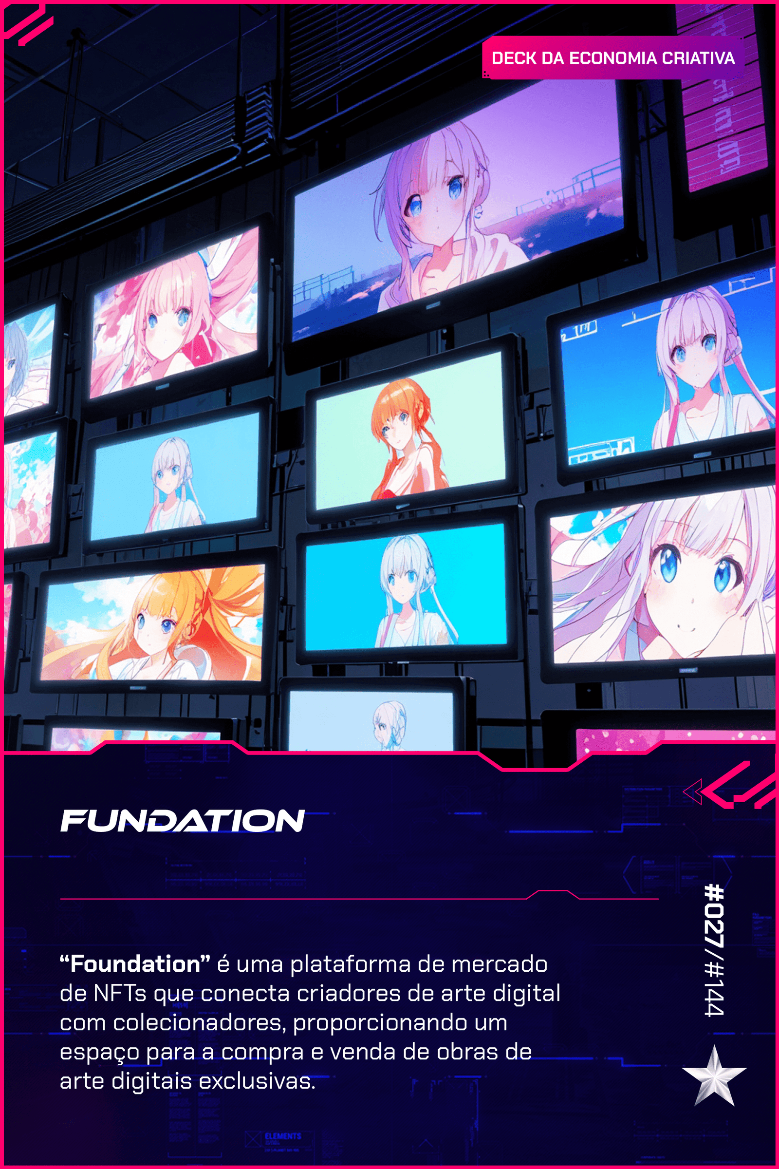Lançada em 2020, Foundation é uma plataforma de mercado de NFTs que conecta criadores de arte digital com colecionadores. A plataforma permite que artistas vendam suas obras digitais como NFTs, garantindo a autenticidade e a propriedade através da tecnologia blockchain.